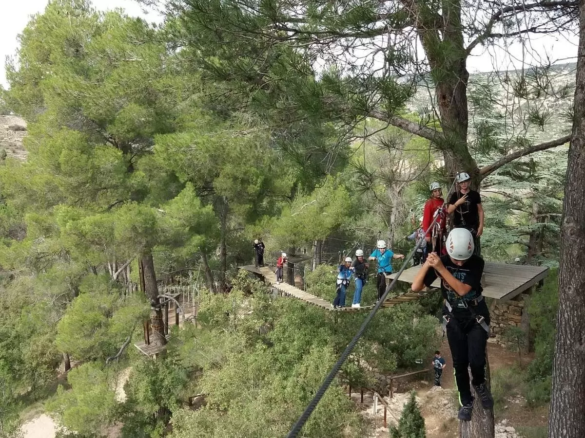 Después del desayuno, os espera una jornada de emoción y movimiento en el Parque de Aventura Saltapins, situado en el entorno natural de la Fábrica Giner, a pocos minutos de Morella. Tirolinas, puentes colgantes y circuitos adaptados a diferentes edades garantizan una experiencia segura y divertida para toda la familia.