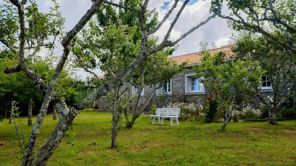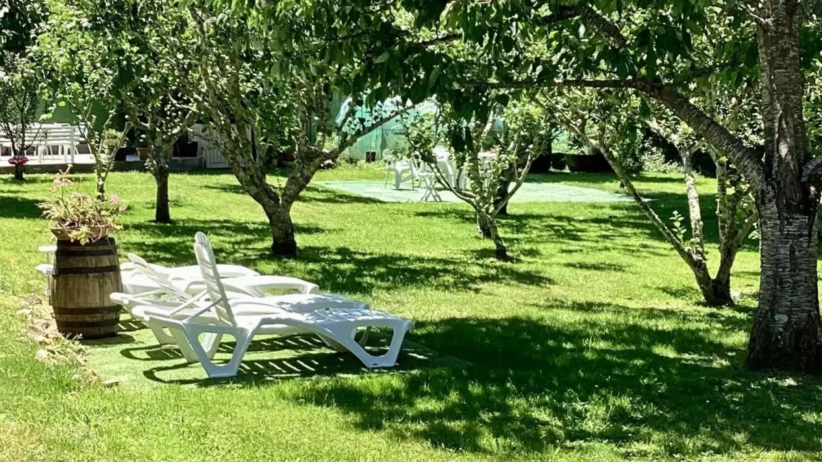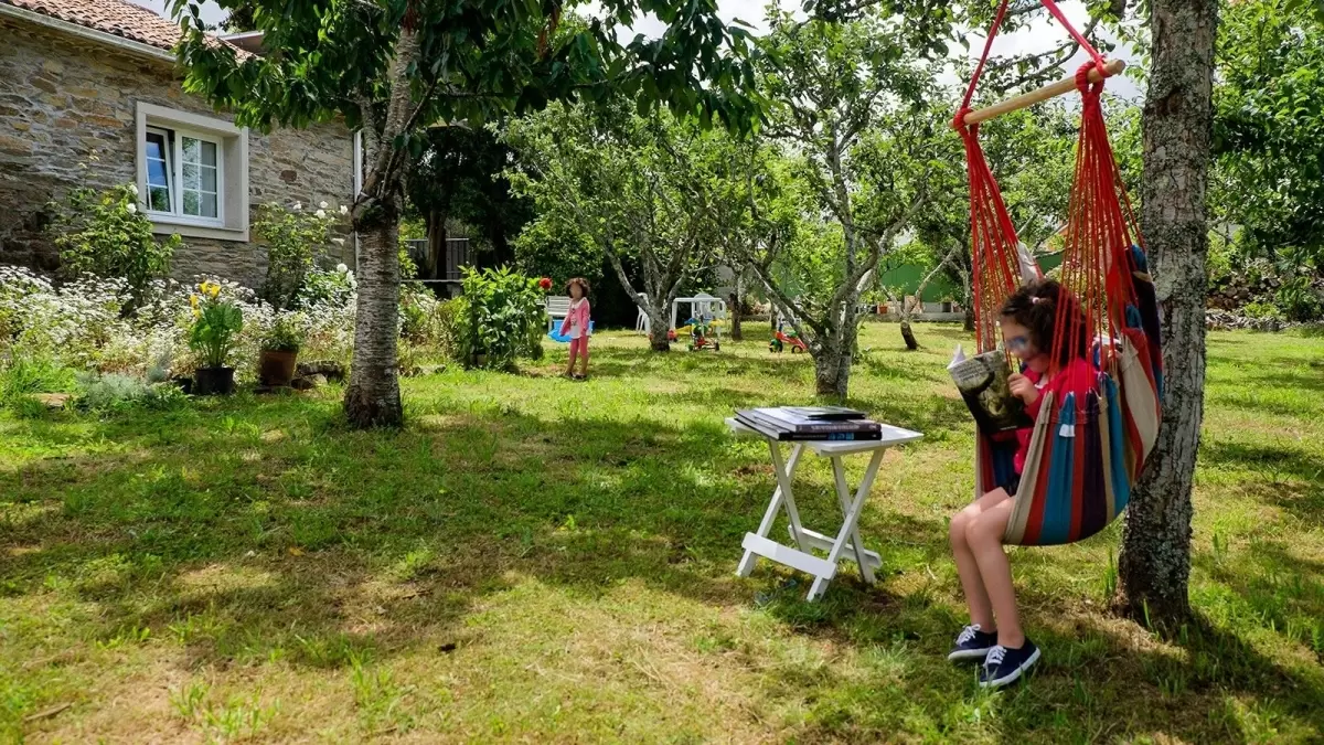 - Huerta amplia de árboles frutales y jardines con barbacoa.